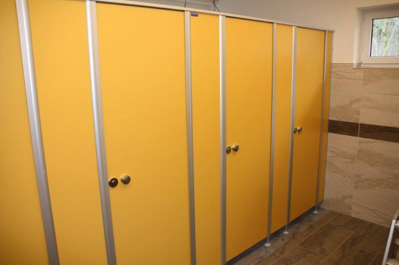 Jede Kabine erhält ein Kleiderhaken und einen Tür-puffer aus Nylon. Papierrollenhalter gegen Aufpreis.